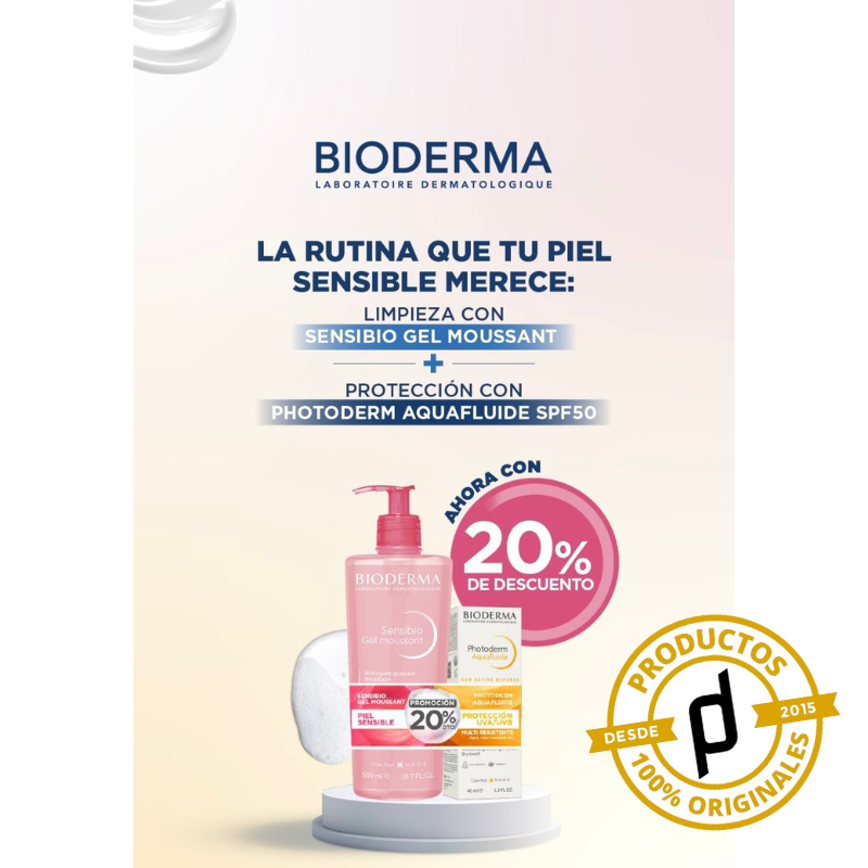 Bioderma PACK Sensibio Gel Moussant 500ml + Photoderm Aquafluido Neutro 40ml: Dúo Esencial para Piel Sensible: Limpieza y Protección.