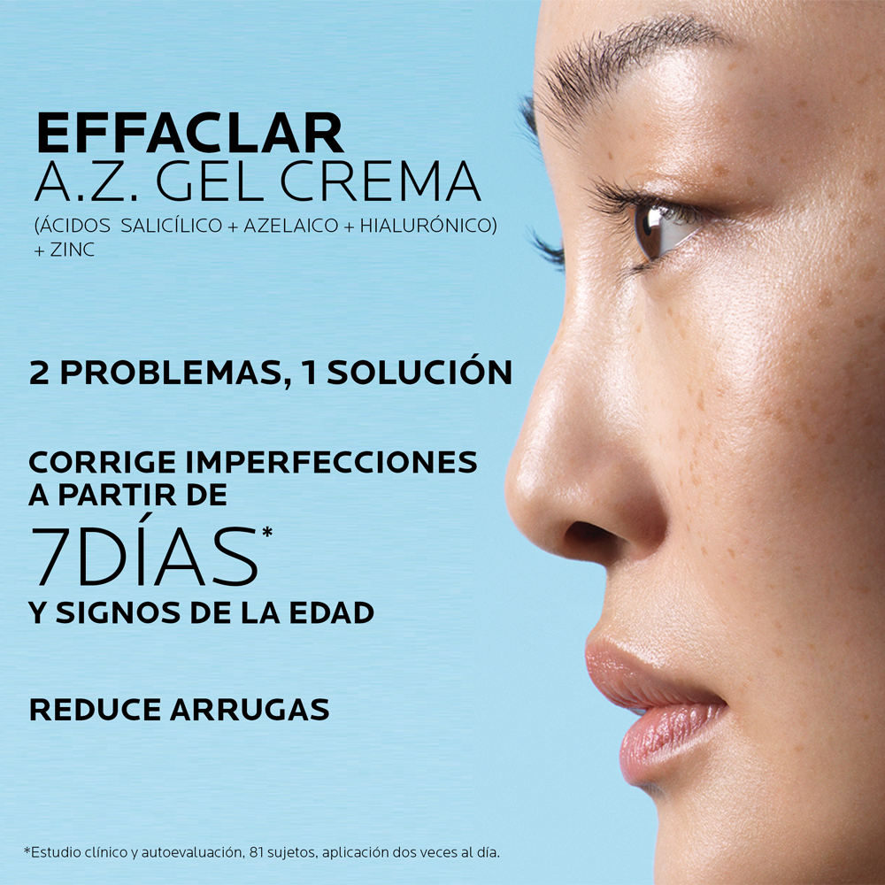 El La Roche-Posay Effaclar A.Z Gel-Crema 40ml es un tratamiento dermatológico de vanguardia diseñado específicamente para pieles con tendencia acneica que presentan marcas persistentes (rojas o cafés), imperfecciones y textura irregular. Su fórmula avanzada combina la eficacia del ácido azelaico con ingredientes calmantes para transformar la calidad de la piel sin comprometer su barrera protectora.